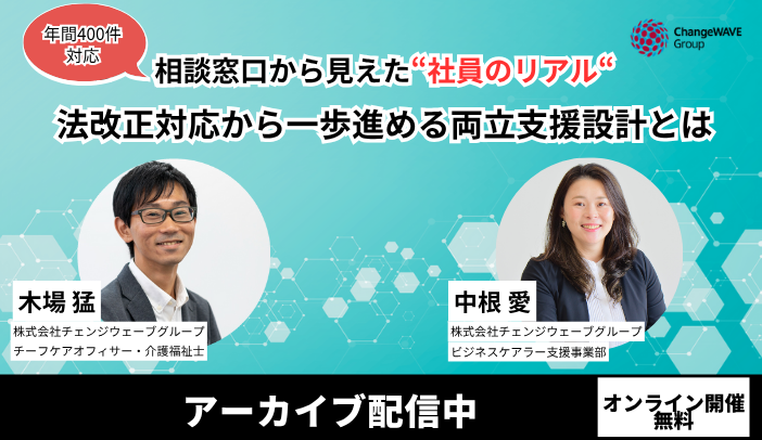 2025年4月から育児・介護休業法が改正施行され、 仕事と介護の両立支援が一層重要視されるようになりました。 一方で、制度整備や法改正への対応は進んだものの 弊社が運営する人事ご担当者の勉強会では 「実態が見えない」「対象者に届いているのか不安」といった課題も聞かれます。 特に介護が始まっていない“未介護層”に対しては、 「無関心に見える」「声が上がってこない」などのお悩みが少なくありません。 本セミナーでは、 両立支援に取り組む企業と、年400件以上の相談を受けてきた専門家による事例から、 「現場のニーズ」に即した両立支援設計のポイントをお伝えします。